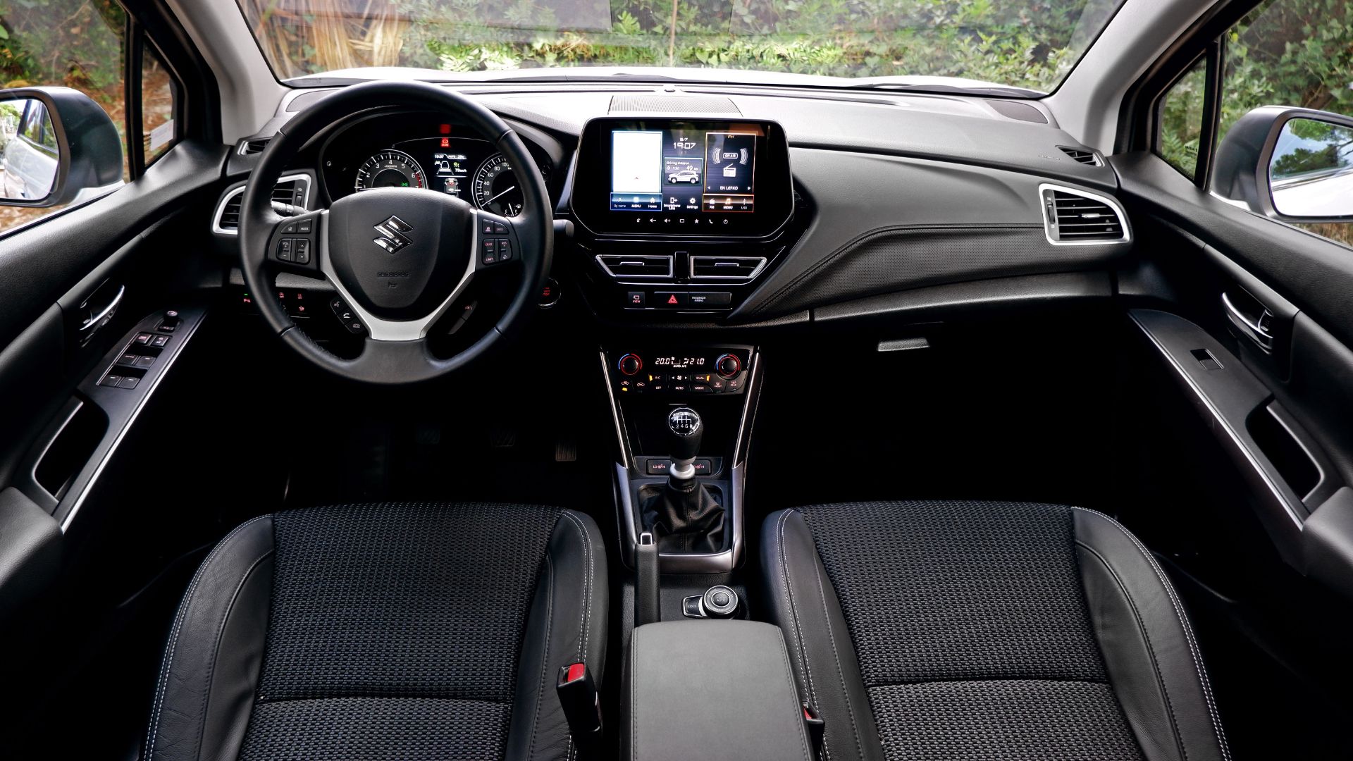 Stepping inside the cabin, the first thing you notice is the new free-standing 9-inch infotainment touchscreen that has been repositioned above the climate vents, flanked by a more stylish insert on the dashboard featuring a soft-touch material. This looks and feels much nicer than the old S-Cross, showing that a small change can make a big difference. Suzuki’s new infotainment has modern graphics and fonts, plus a revised menu structure that is easy to get used to, not losing the simplicity of the proven old system. The always-on touch-sensitive shortcuts on the bottom would be better off as actual buttons, but at least the screen is responsive. Interestingly, the S-Cross is the only Suzuki product in Europe that benefits from the new infotainment, unlike other Asian markets where it is already widely used by the majority of the Suzuki range.